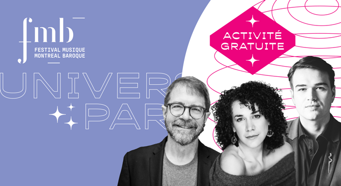 Activité gratuite avec la contralto Rose Naggar-Tremblay, le contre-ténor Ian Sabourin, le claveciniste et chef d’Arion Orchestre Baroque Hank Knox. et Vincent Lauzer, flûtiste et codirecteur artistique du Festival Montréal Baroque
